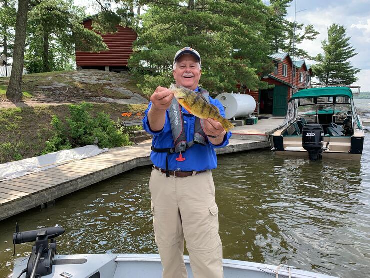 These tyrannical little fish are aggressive feeders for a relatively small species. Considered a panfish, their lateral bars are unmistakable, and here in Sunset Country, jumbos are common! Sort of like the one below caught with Duck Bay Lodge. Perch make excellent table fare fish—some even claim they taste better than walleye!