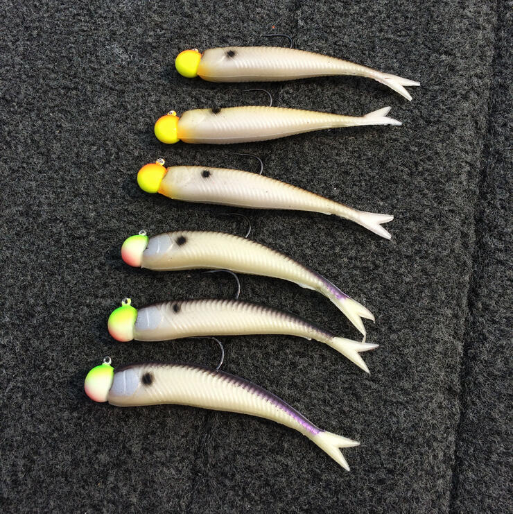 Jeff likes to use a ¼ ounce jig tipped with a three-inch soft plastic minnow most of the time.