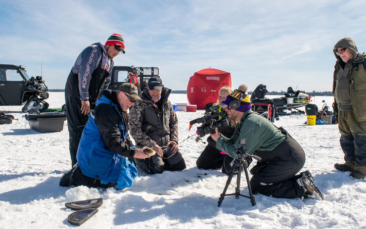 You arrive at your destination and are greeted by a heated shelter in the perfect location to allow for a day of fishing in any condition. Joining us on our trip were the crew from Midwest Outdoors, Firstrike Fishing, and Bucket Hoodie Company. You couldn’t ask for a better crew to be out there with, and it was fascinating watching them film for their commercial and YouTube video.