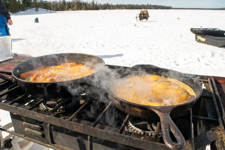 With your lunch all done you can hunker down and jig for massive lake trout and pike for the afternoon. Or try your hand at perch and crappie. No matter which is your favourite, you’ll find them here. Watch an incredible winter sunset on the ice before heading back for the day to enjoy an evening of camaraderie and laughter.