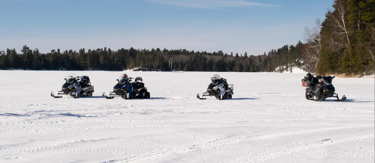 Leaving the garage in the massive, heated six-seater Can-Am Defender, you head out onto the ice in style. This beast is a wonder of form and function. Or choose one of the two-seater snowmobiles. Either way, one look at them and you can see they can clearly handle anything winter can throw their way.
