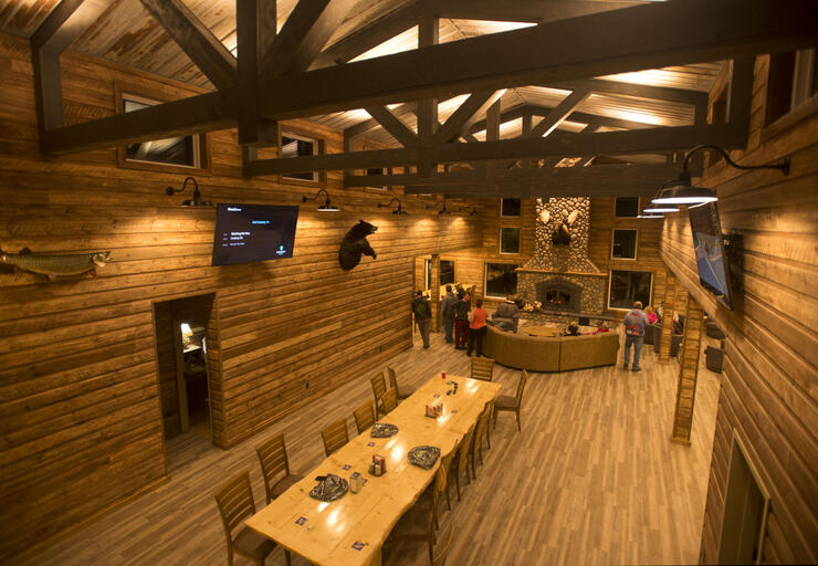 When arriving at Temple Bay Lodge, you can't help but stare at their newly built, massive, log-hewn lodge. It has all the comforts you’re looking for after a productive day on the ice. Walking in you are presented with a beautiful “great room,” cathedral ceilings, and a stone hearth fireplace surrounded by comfy seating for leisurely evening storytelling near the warm, cozy fire. Grab a drink or snack at the bar and enjoy the evening.
