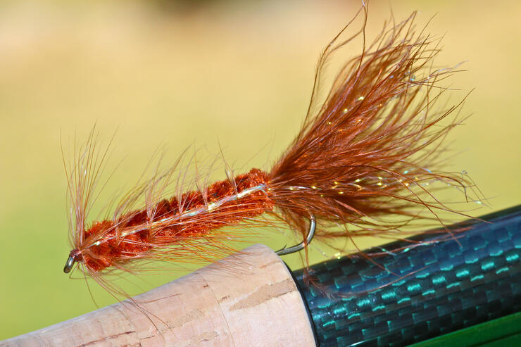 The first is to use a short sink-tip fly line with a short 4-5 foot leader to a white or black wooly bugger. I cast this setup onto ledges, boulders, fallen trees, etc... and then “twitch” the fly back. I find that white woolly bugger in sizes 4-8 to work very well.