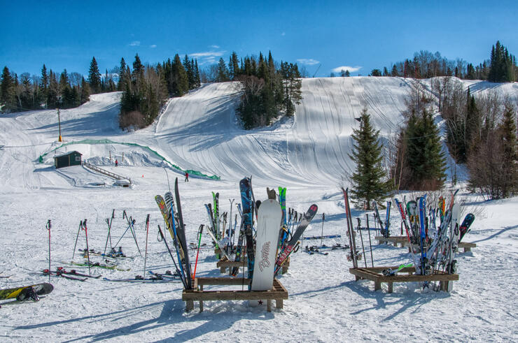 This popular spot offers a variety of fun winter sports. The ski hill is short but steep, with a 220-foot vertical. Take your pick from 11 runs for downhill skiing and snowboarding, serviced by two T-bar lifts, and equipment rentals are available. The cross-country ski area offers more than 20 km of trails for skate or classic skiing, and while most are beginner or intermediate, advanced skiers can enjoy the rolling terrain of “The Rollercoaster.” There’s also a terrain park to fine-tune your snowboarding skills, a tubing hill for plenty of family-friendly sliding, and a chalet to pick up snacks.