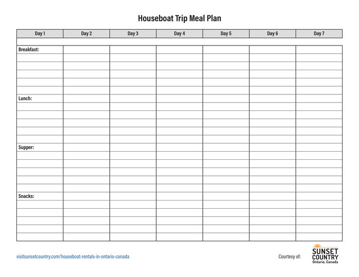 Download the following printable Houseboat Trip Meal Planner to help you organize your meals.