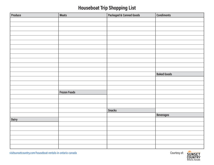 Don't forget anything with these downloadable Houseboat Trip Checklists, Shopping Lists, and Meal Planners.
