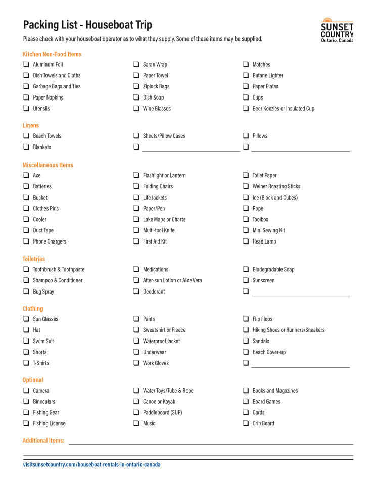 Download this printable Houseboat Trip Packing List and check off the items you need to pack. I scratched out the things I didn’t need to bring and then checked the items off as I packed them. Again, make sure you know what is supplied on your houseboat, many of these things may already be supplied on your houseboat.