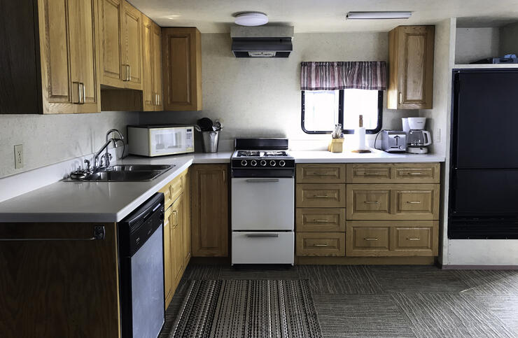 Most houseboat kitchens, like this one from Floating Lodge of Sioux Narrows, are fully stocked!