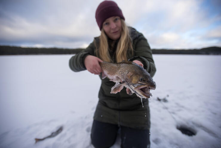 Around many of the larger communities, there are several stocked trout lakes that offer great ice fishing. Most are easy to access with good numbers of fish. Brook trout are the most common, but some lakes are stocked with rainbow trout and splake as well.