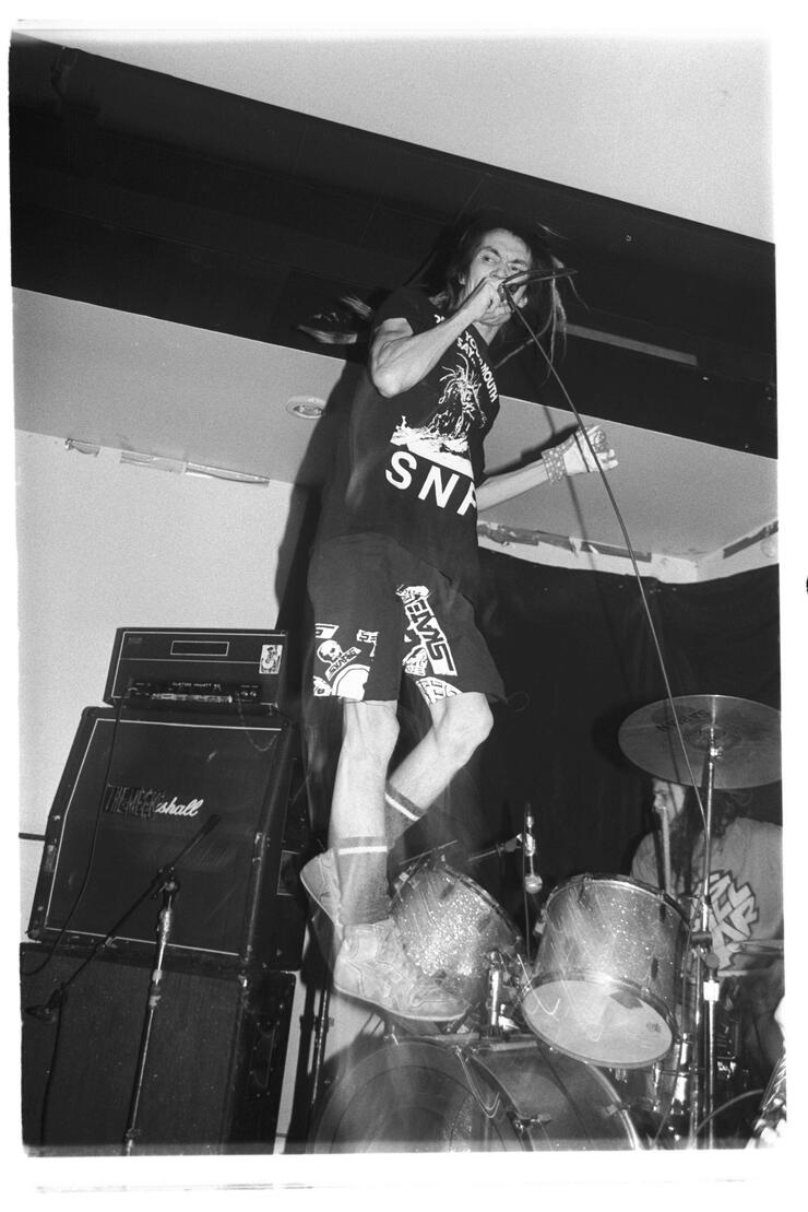 Frank was and is a passionate supporter of the local music scene, providing opportunities for homegrown musicians to take the stage and play alongside their contemporaries and welcomed all musical genres — everything from punk, hip hop, jazz, noise-rock, shoegaze, psychedelia, metal and alternative rock. It was not unusual to have punks, headbangers, treeplanters, straight-edge kids, hunters, anglers, high schoolers, and university hipsters all at the same show. Crocks was the great equalizer and everyone was there for the music. The venue was also known for its interior design — dark with low-ceilings, cherry red vinyl booth seats, a bathroom that would occasionally flood, all added to the charm. The atmosphere, like the musical lineup, was very much part of the experience.