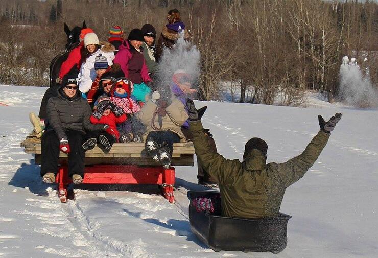 Visitors are taken on a picturesque gallop through the white-frosted landscapes of the Slate River Valley surrounded by the scenic Nor’wester Mountain range in the rural country side south of the city. In addition, there is an array of other family-fun activities such as farm animal visits and complimentary hot drinks in the cozy log house.
