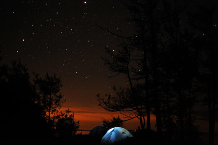 We settle on Franklin Island, a short drive from the town of Parry Sound. Lying within the sprawling Georgian Bay Biosphere Reserve—home to the 30,000 Islands, the world’s largest freshwater archipelago—Franklin is accessible yet largely wild. The six-kilometer-long slab of peach-colored Precambrian Shield is packed with small lakes, draped with wind-skewed pines and cleaved by countless coves and channels. Georgian Bay’s expansive waters massage its outer shores; the distant silhouettes of the tiny Mink Islands afford scant protection.